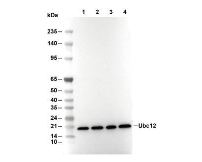 Ubc12 Antibody [K5G17] detects endogenous levels of total Ubc12 protein.