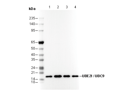 UBE2I / UBC9 Antibody [F14C23] detects endogenous levels of total UBE2I/UBC9 protein.