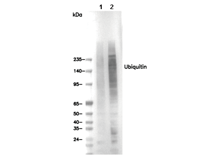 • Lane 1: Hela, Lane 2: Hela (MG132, 50 µM, 90 min)