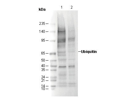 この抗体はLys63(K63)残基によって形成されるポリユビキチン鎖のみを認識するため、WB結果に「テーリング」という通常の現象が現れる場合があります。