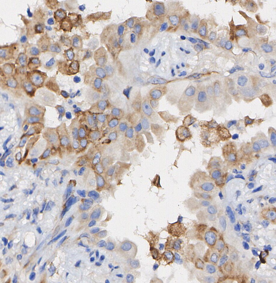 • Immunohistochemical analysis of formalin fixed paraffin embedded human Lung adenocarcinoma tissue with F2191 at 1/50 dilution.