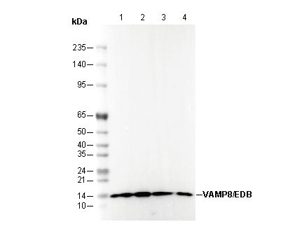 VAMP8/EDB Antibody [C22H20] recognizes endogenous levels of total VAMP8/EDB protein.