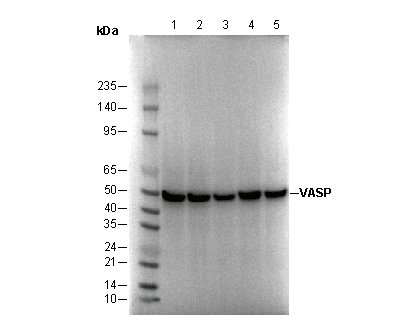 VASP Antibody [A20G16] detects endogenous levels of total VASP protein.