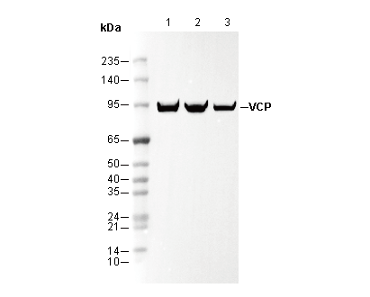 VCP Antibody [N9N20] recognizes endogenous levels of total VCP protein.