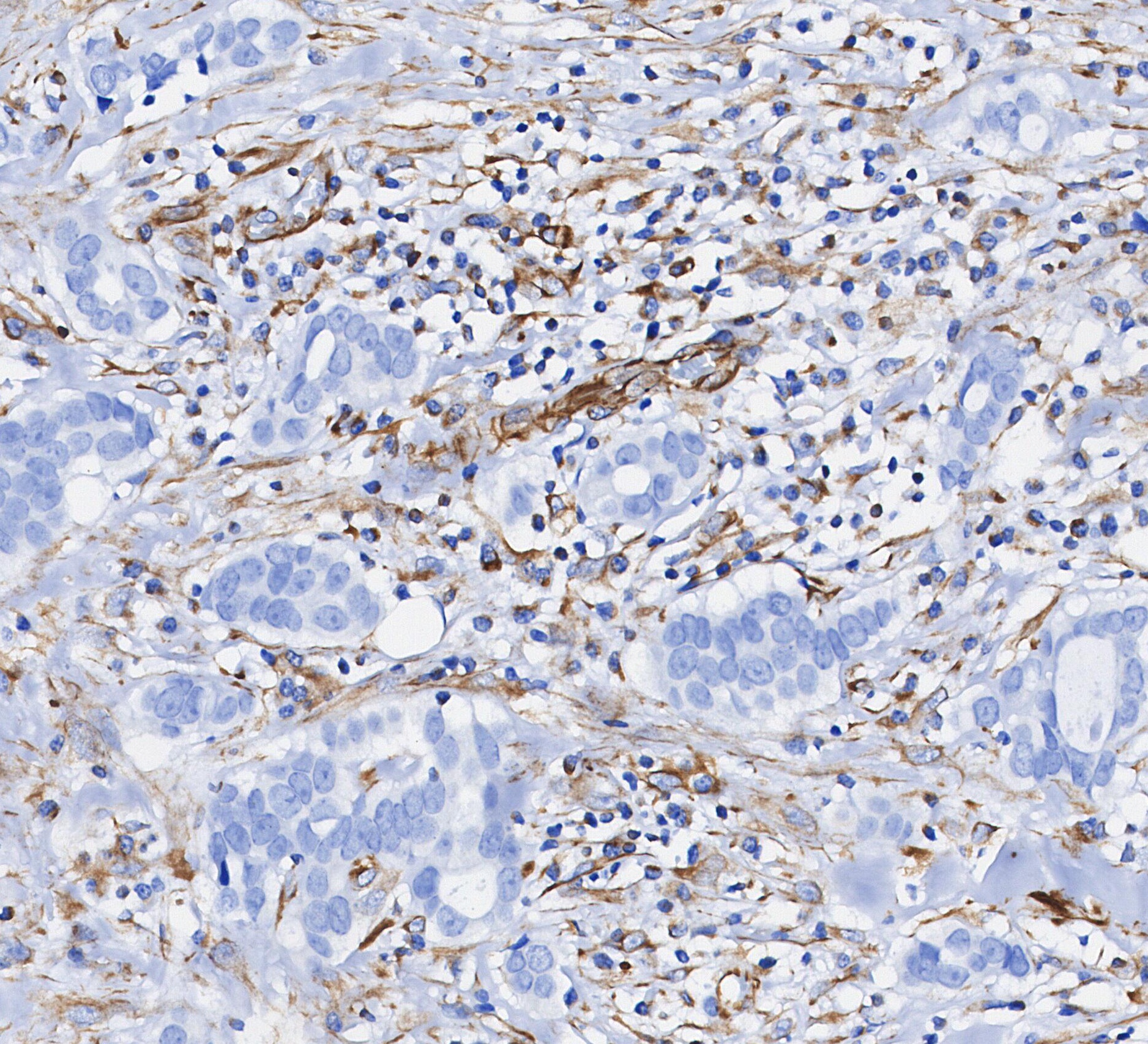 • Immunohistochemical analysis of formalin fixed paraffin embedded human breast cancer tissue with F0166 at 1/100 dilution.