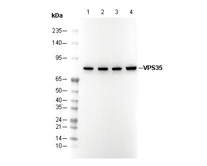 VPS35 Antibody [D14A13] recognizes endogenous levels of total VPS35 protein.