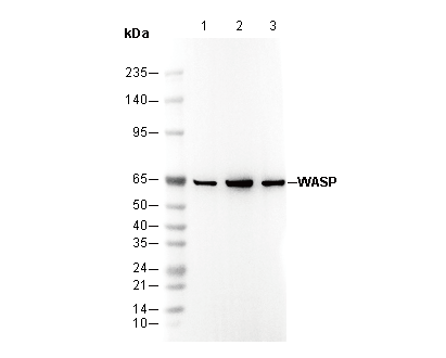 WASP Antibody [P17L15] detects endogenous levels of total WASP protein.
