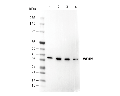 WDR5 Antibody [P9M1] recognizes endogenous levels of total WDR5 protein.
