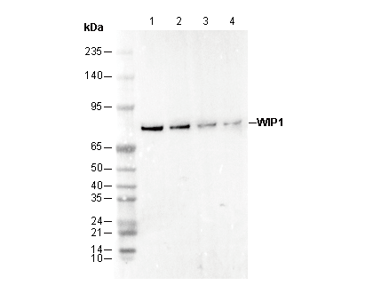 WIP1 Antibody [P19M24] recognizes endogenous levels of total WIP1 protein.