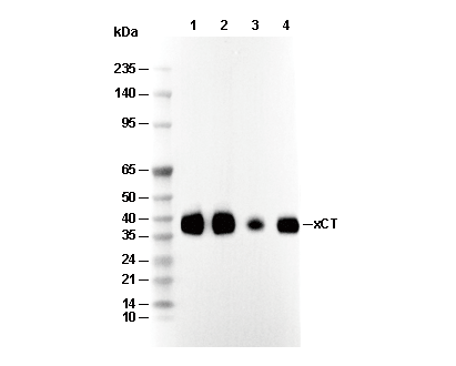 xCT/SLC7A11 Antibody [H13H3] recognizes endogenous levels of total xCT protein.