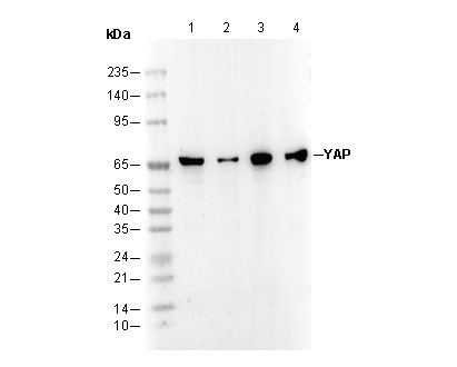 YAP Antibody [C6K11] recognizes endogenous levels of total YAP protein.