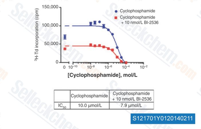 | 製品説明 | Cyclophosphamide(NSC 26271,Endoxan, Cytoxan, Neosar, Procytox, Revimmune, Cytophosphane) is a nitrogen mustard alkylating agent from the oxazophorines group. |