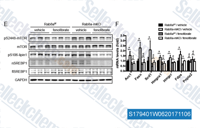 | 製品説明 | Fenofibrate is a compound of the fibrate class and fibric acid derivative. Fenofibrate is a selective agonist of PPARα with EC50 of 30 μM. Fenofibrate binds to and inhibits cytochrome P450 epoxygenase (CYP)2C with IC50 of 0.2 μM, 0.7 μM and 9.7 μM for CYP2C19, CYP2B6 and CYP2C9, respectively. Fenofibrate induces autophagy. |
