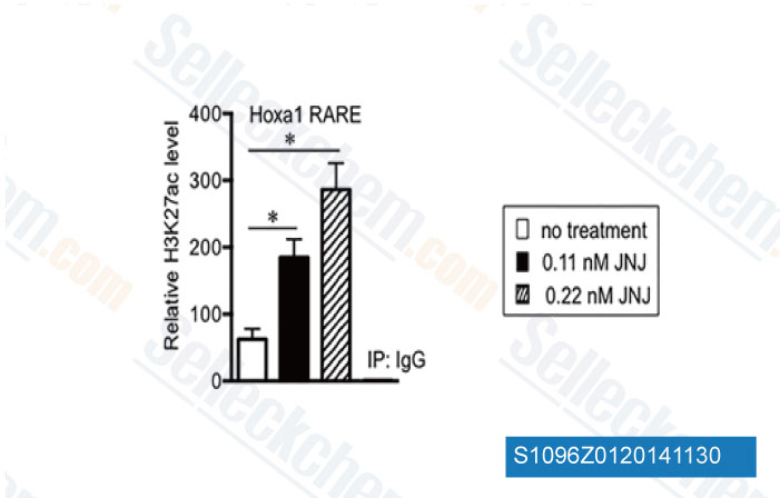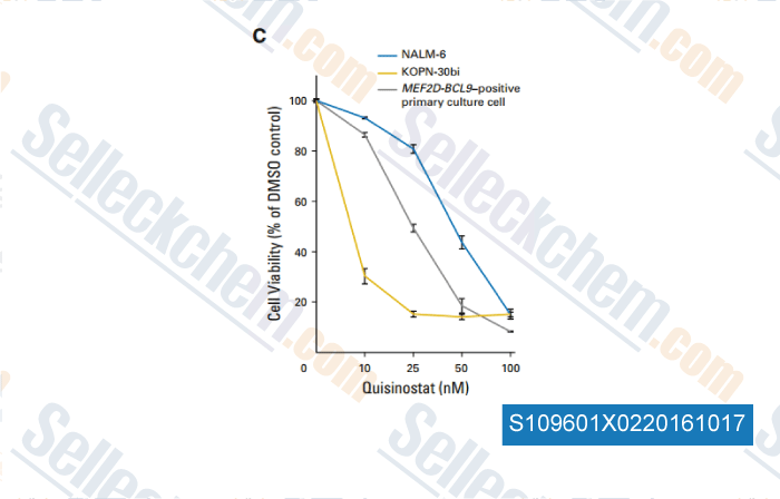| in vitro | JNJ-26481585 exhibits broad spectrum antiproliferative activity in solid and hematologic cancer cell lines, such as all lung, breast, colon, prostate, brain, and ovarian tumor cell lines, with IC50 ranging from 3.1-246 nM, which is more potent than R306465, CRA-24781, or mocetinostat in various human cancer cell lines tested. [1] A recent study shows that JNJ-26481585 promotes myeloma cell death at low nanomolar concentrations by resulting in Mcl-1 depletion and Hsp72 induction. [2] |