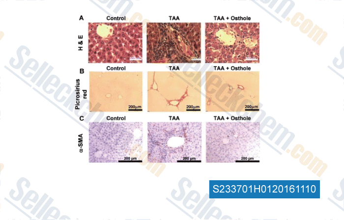 | Osthole ameliorates hepatic fibrosis and inhibits hepatic stellate cell activation [Liu YW, et al. J Biomed Sci, 2015, 22:63] | PubMed: 26231226 |
