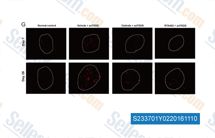 | Osthole improves an accelerated focal segmental glomerulosclerosis model in the early stage by activating the Nrf2 antioxidant pathway and subsequently inhibiting NF-κB-mediated COX-2 expression and apoptosis [Yang SM, et al. Free Radic Biol Med, 2014, 73:260-9] | PubMed: 24858719 |