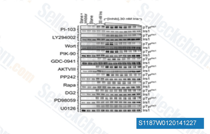 | in vivo | Immediately following insulin treatment, PIK-90 (10 mg/kg) completely protects animals from this insulin-stimulated decline in blood glucose. [4] |