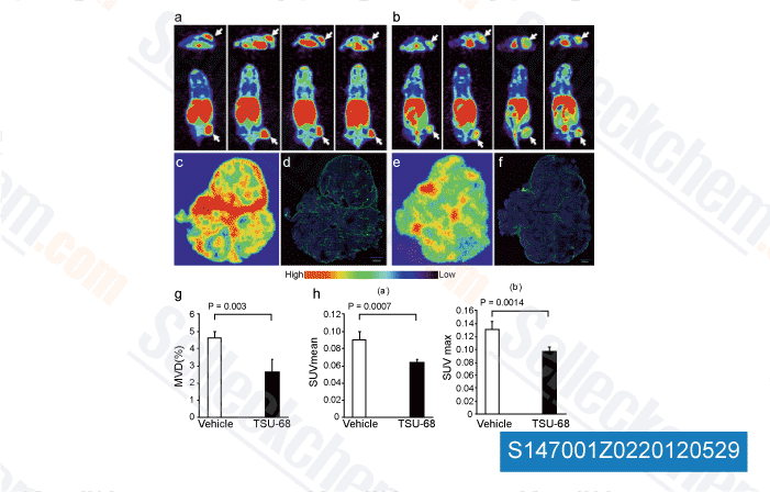 | in vivo | Orantinib (SU6668) induces tumor growth inhibition against a broad range of tumor types in xenograft models in athymic mice, including A375, Colo205, H460, Calu-6, C6, SF763T, and SKOV3TP5 cells at doses of 75-200 mg/kg. This compound (75 mg/kg) also suppresses tumor angiogenesis of C6 glioma xenografts. In a tumor model of HT29 human colon carcinoma, it (200 mg/kg) decreases the average vessel permeability and average fractional plasma volume in the tumor rim and core. TSU-68 promotes abnormal stromal development at the periphery of carcinomas. In a rabbit VX2 liver tumor model, it (200 mg/kg) augments the effect of chemotherapeutic infusion. |
