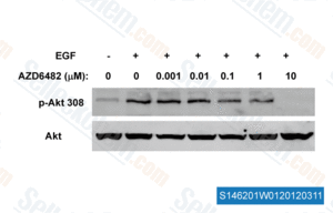 | in vitro | AZD6482 also inhibits PI3Kα, γ, and δ, with IC50 of 80 nM to 1.09 μM, which are significantly lower than its (+)-enantiomer (S-form). This compound is an antiplatelet agent; it blocks platelet activation adhesion/aggregation and promotes platelet disaggregation in assay of washed platelet aggregation (WPA), with an IC50 value of 6 nM. Furthermore, by targeting PI3Kβ, this chemical specifically inhibits thrombosis without interfering with normal haemostasis. Therefore, it is used as an anti-thrombotic drug for the prophylaxis of thrombotic disorders. [1] |