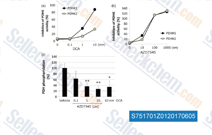 | in vitro | In the presence of recombinant human PDHK2, AZD7545 increases PDH activity with EC50 of 5.2 nM. In primary rat hepatocytes, this compound increases PDH activity with EC50 of 105 nM. [2] It inhibits PDHK activity by disrupting the interactions between PDHK2 and the inner lipoyl-bearing domains (L2) of the dihydrolipoyl transacetylase component (E2) of PDC. [3] |