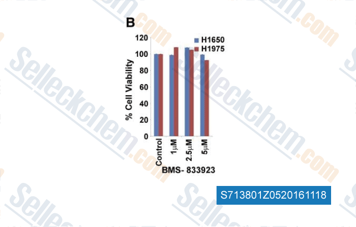 | in vitro | BMS-833923 reduces hedgehog pathway activity, decreases cell proliferation and induces apoptosis via the intrinsic pathway in esophageal adenocarcinoma (EAC) cell lines. [2] This compound dose-dependently affects canonical and prostate hedgehog signature gene transcription in vitro. [3] |