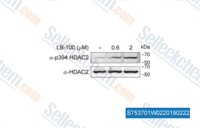 | in vivo | In a mouse pancreatic cancer xenograft model, LB-100 (2 mg/kg, i.p.) enhances chemotherapy of doxorubicin. This compound causes higher density of microvessel in tumors and rapid blood flow at the surface of tumors. |