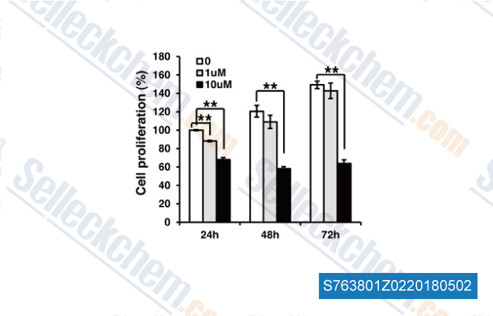 | in vitro | LDC1267 moderately affects cell proliferation in 11 of 95 different cell lines with IC50 of >5μM. In NKG2D-activated NK cells, this compound abolishes the inhibitory effects of Gas6 stimulation. [1] |