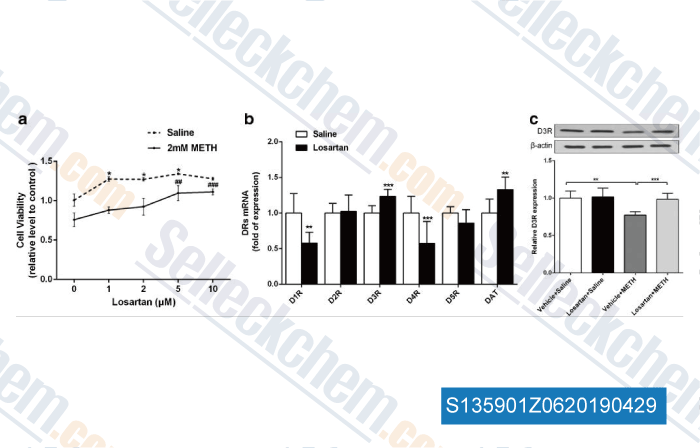 | 製品説明 | Losartan Potassium is an angiotensin II receptor antagonist, competes with the binding of angiotensin II to AT1 receptors with IC50 of 20 nM. |
