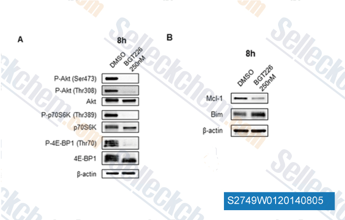 | PI3K/mTOR dual inhibitor NVP-BEZ235 decreases Mcl-1 expression and sensitizes ovarian carcinoma cells to Bcl-x L -targeting strategies provided that Bim expression is induced [Jebahi A et al. Cancer Lett, 2014, 348(1-2):38-49] | PubMed: 24650799 |