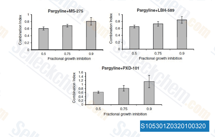 | in vitro | Panobinostat (LBH589) induces apoptosis among MOLT-4 and Reh cells in a time- and dose-dependent manner, and is more potent in MOLT-4 than in Reh cells. It markedly prevents the growth of both cell lines in a dose-dependent manner at 48 hours, and causes a 2- to 3-fold increase in the number of cells in the G2/M phase of the cell cycle compared with the control cells. This compound is associated with induction of histone H3K9 and histone H4K8 acetylation as well as decreasing levels of c-Myc expression in a dose-dependent manner. Its treatment also increases the levels of p21 expression, and decreases the levels of c-Myc after an initial increase at the lowest dose (10 nM) in Reh cells. In addition, it gives rise to substantial increases in mRNA levels of proapoptosis and DNA repair genes, and induces increased levels of acetylated histone H3 and H4 at the GADD45G promoter. [1] Besides, it inhibits growth of non small cell lung cancer cell lines (such as human H1299, L55 and A549 with IC50 of 5 nM, 11 nM and 30 nM, respectively), mesothelioma (such as human OK-6 and Ok-5 with IC50 of 5 nM and 7 nM, respectively) and small cell lung cancer cell lines (such as human RG-1 and LD-T with IC50 of 4 nM and 5 nM, respectively). [2] |