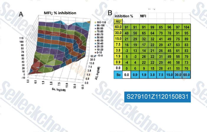 * <1 mg/ml means slightly soluble or insoluble. * Please note that Selleck tests the solubility of all compounds in-house, and the actual solubility may differ slightly from published values. This is normal and is due to slight batch-to-batch variations. |