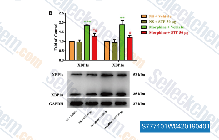 | in vitro | In RPMI 8226, MM.1S, and MM.1R MM cell lines, STF-083010 exhibits cytostatic and cytotoxic activity in a dose and time dependent manner. In MiaPaCa2, Panc0403, and SU8686 cell lines, this compound inhibits XBP1 splicing and blocks IRE1α's endonuclease activity without affecting its kinase activity. In Eμ-TCL1 CLL cells, it exhibits about 70% growth inhibition after 3 days culture. In MEC1 and MEC2 cells, this chemical produces 20% growth inhibition in 48 h. WaC3 cells respond to treatments with this compound with gradually decreased growth. |