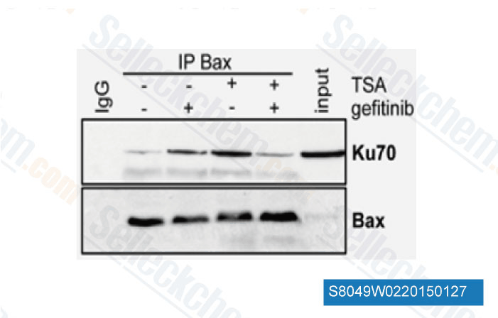 | in vitro | Tubastatin A is selective at all isozymes except HDAC8 and maintains over 1000-fold selectivity against all isoforms excluding HDAC8, where it has approximately 57-fold selectivity. This compound preferentially induces α-tubulin hyperacetylation at 2.5 μM. Slight induction of histone hyperacetylation is seen for this chemical at 10 μM. It displays dose-dependent protection against homocysteic acid-induced neuronal cell death starting at 5 μM with near complete protection at 10 μM. [1] This compound (10 μM) induces an increase in acetylated-α-tubulin levels and the restoration of primary cilia expression in the cholangiocarcinoma cell lines (18-fold); and the restoration of primary cilia correlated with downregulated Hedgehog (Hh) and MAPK signaling pathways, as well as decreased cell proliferation rates (in average by 50%) and invasion (by 40%). [2] It shows significant inhibition of TNF-α and IL-6 in LPS stimulated human THP-1 macrophages with an IC50 of 272 nM and 712 nM. This inhibitor inhibits nitric oxide (NO) secretion in murine Raw 264.7 macrophages dose depenndently with an IC50 of 4.2 μM. [3] |