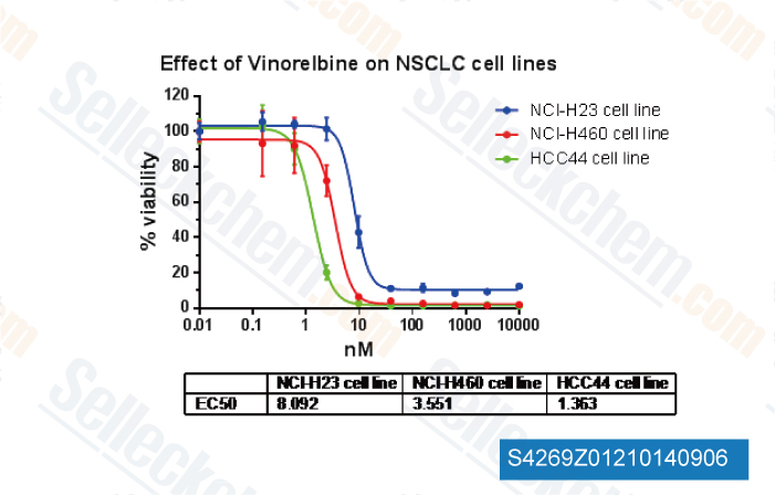 | in vitro | Vinorelbine inhibits microtubule assembly by inducing tubulin aggregation into spirals and paracrystals. [1] Vinorelbine shows potent antiproliferative activity against a series of tumor cells, including human melanoma, non-small-cell lung cancer, breast cancer, etc. [2][3][4] |