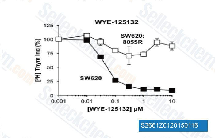 | in vivo | WYE-125132 (WYE-132) (5 mg/kg p.o.) produces significant antitumor activity and causes dose-dependent tumor growth delay in the PI3K/mTOR- and HER2-hyperactive MDA361 tumor model. In addition, this compound also shows potent antitumor efficacy in the PTEN-null glioma U87MG, non-small cell lung cancer H1975 and A549 models. [1] |